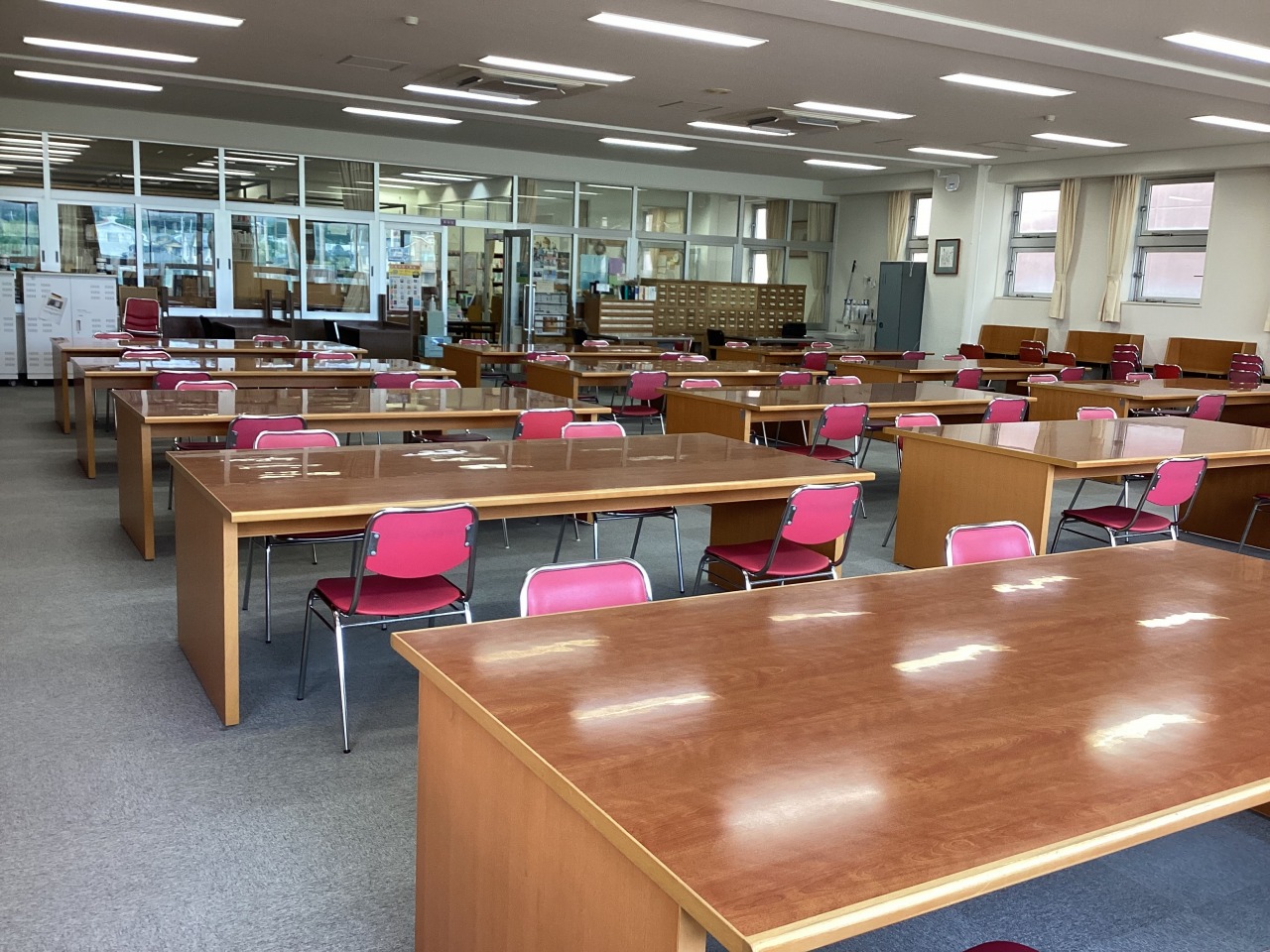 学校図書館再建整備を目指して、寄付金50万円をもとに自由接架式2教室分の閲覧室を設けた。座席数92。